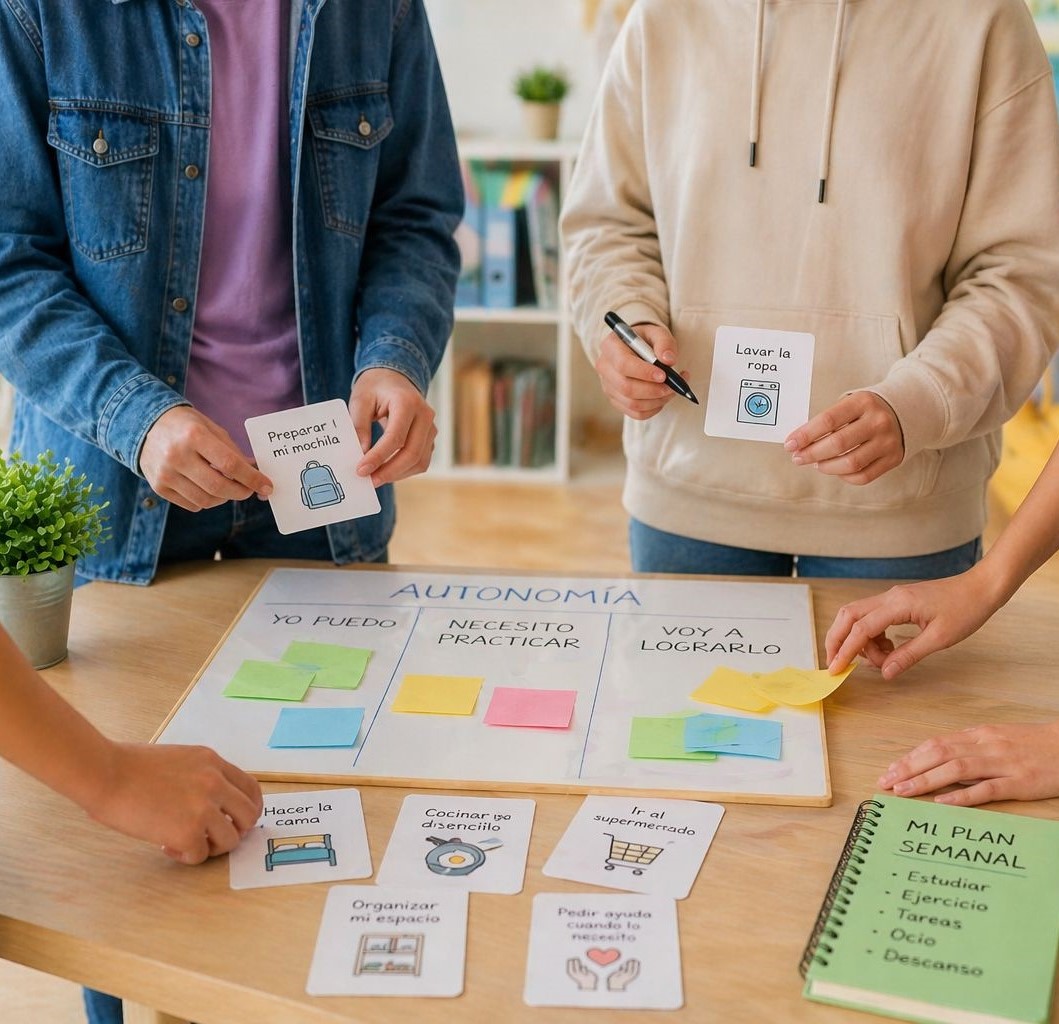 Grupo de Habilidades Sociales y Autonomía (adolescentes) Espacio terapéutico grupal que integra Psicología y Terapia Ocupacional, orientado a fortalecer habilidades sociales, autonomía y regulación emocional en la vida cotidiana. A través de propuestas prácticas y vivenciales, se acompañan aspectos como la organización personal, el cuidado del cuerpo, los vínculos, el uso responsable de recursos y la participación social, promoviendo mayor independencia y bienestar.